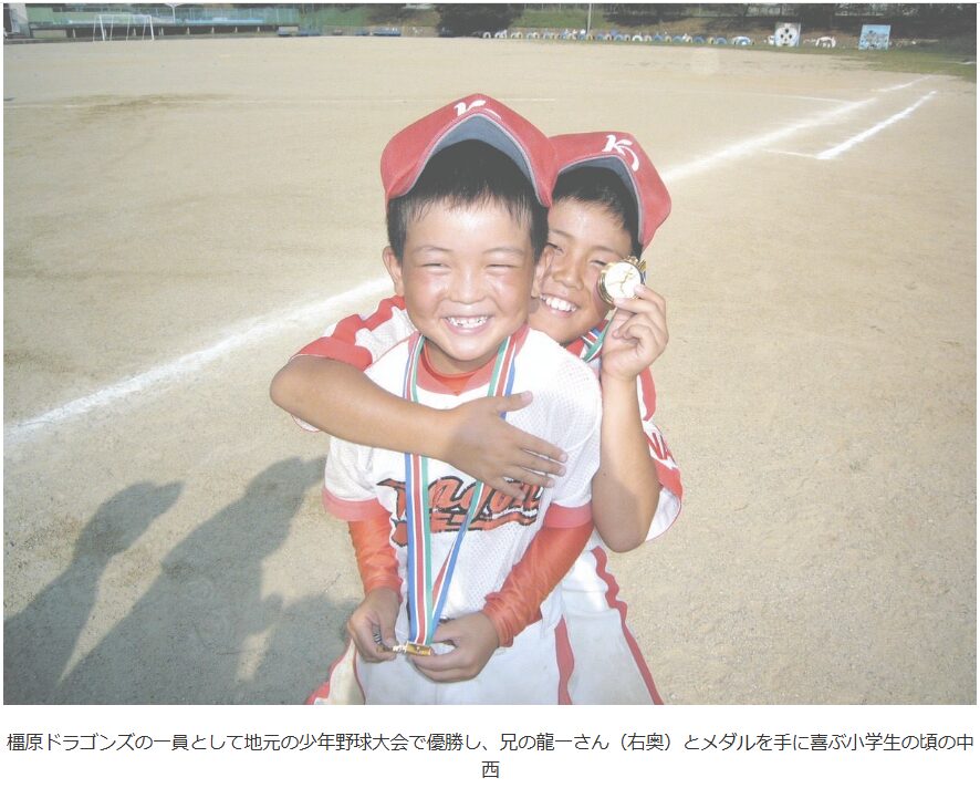 幼少期の中西聖輝投手は、龍一さんの練習に父親と一緒について行って練習を見て野球に対する思いが大きくなったそうです。