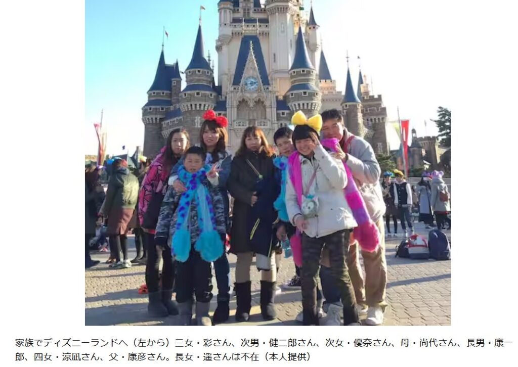 家族構成は父親の康彦さんと母親の尚代さん、お姉さんが4人と弟さんが一人です。
