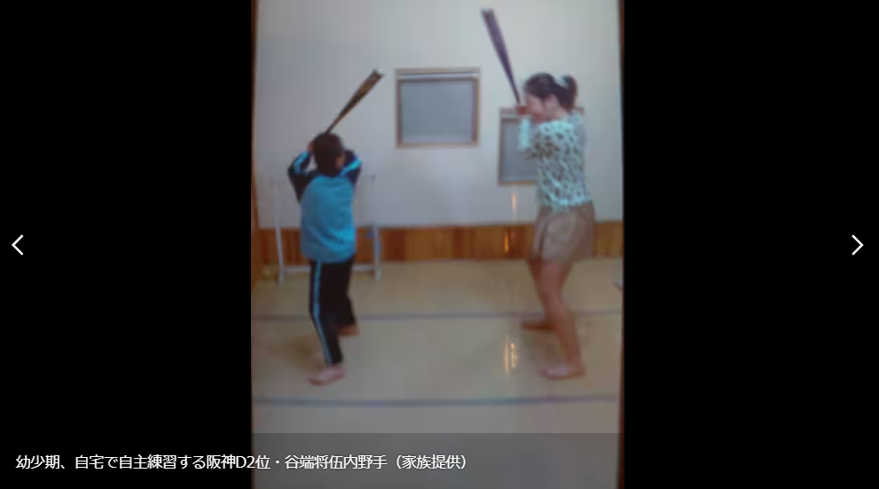 - 谷端将伍選手の小さな頃は家の中でも野球漬けでバトミントンの羽を使った打撃練習の投手役は母の正美さんだった。